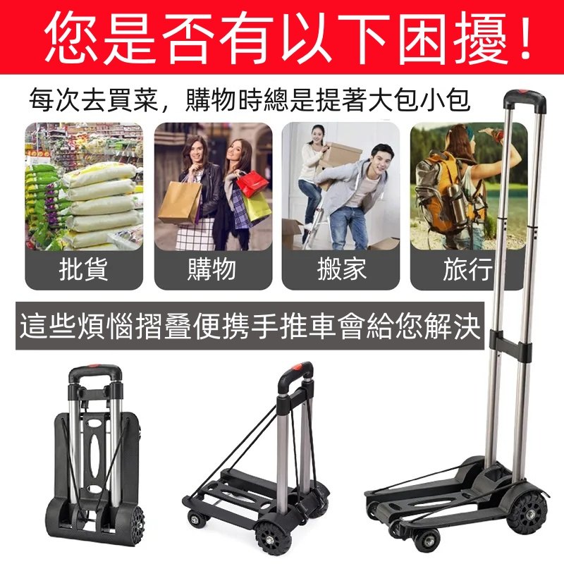 無組裝折疊手推車 40 磅(約 199.6 公斤),帶輪子和直立鎖的多莉推車,可伸縮重型可折疊小車,適用於行李、旅行、辦公室和宿舍,Carrito de Carga