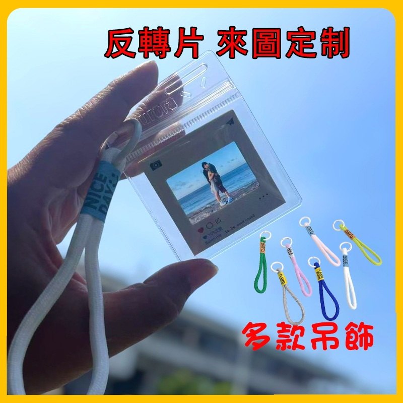 Frame size: 5×5cm (outer). Inner window: 2.4×3.7cm. Film size: 3.8×2.5cm. DIY assembly: cut along the red line and paste onto the adhesive frame. Lanyard: 138mm length, 6.3g, with a ring.