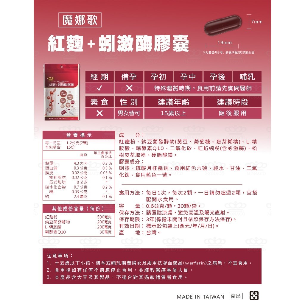 查看紅麴+蚓激酶膠囊配方