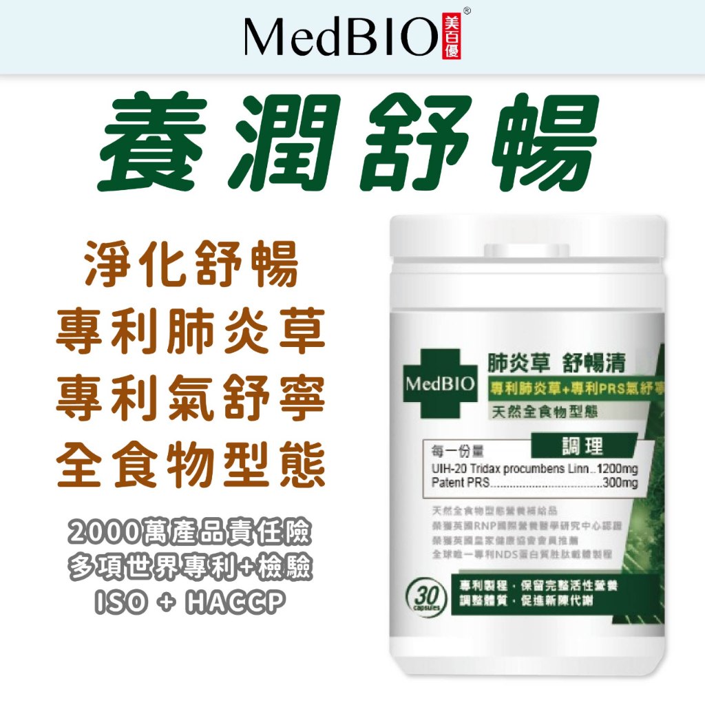 美百優 MedBIO「肺炎草舒暢膠囊」的主要概念,是以專利UIH-20肺炎草萃取粉作為核心來源,並搭配專利PRS氣紓寧(柑橘濃縮、酵母濃縮、胡蘿蔔濃縮、黃豌豆濃縮)。整體走向是「天然全食物型態營養補給品」,強調專利製程與活性營養的保留。