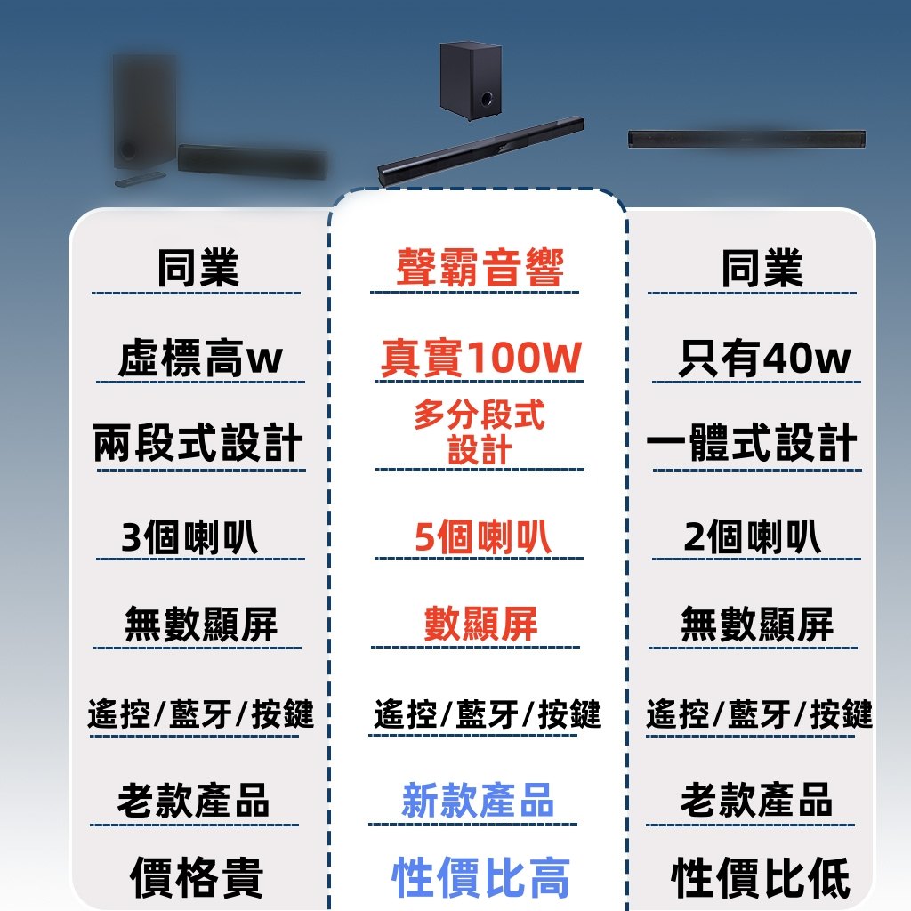 (比較情境示意:同一空間下,低頻通道會直接影響聽感。)